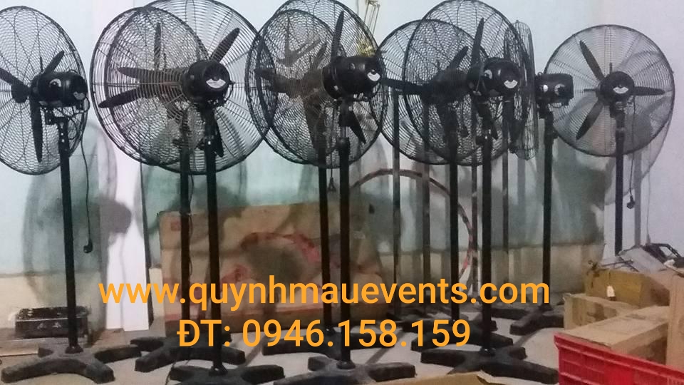 Công ty Quỳnh Mậu Event là đơn vị chuyên cho thuê thiết bị tổ chức sự kiện bao gồm quạt công nghiệp quạt làm mát không khí, quạt công nghiệp có 2 loại thông dụng là treo và đứng, quạt có đường kính 65cm, 75cm, di chuyển lắp đặt linh hoạt cho các sự kiện có số lượng người đông không khí sự kiện thoáng mát giúp khách hàng thoải mái tham gia sự kiện. Khi nhu cầu tổ chức tiệc sinh nhật, cưới hỏi hội họp cần hệ thống quạt gắn phun sương, quạt công nghiệp, quạt làm mát, điều hòa không khí hảy liên hệ với dịch vụ cho thuê quạt công nghiệp công ty chúng tôi lắp đặt tận nơi dịch vụ 24/24.